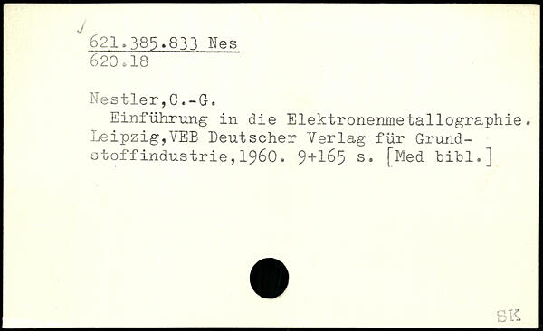 Einführung in die Elektronemne tallographie. Leipzig,VEB Deutscher Verlag für Grundstoff industrie , 1960.