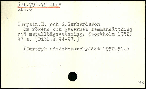 Om Rökens och gasernas sammansättning vid metallbågsvetsning.