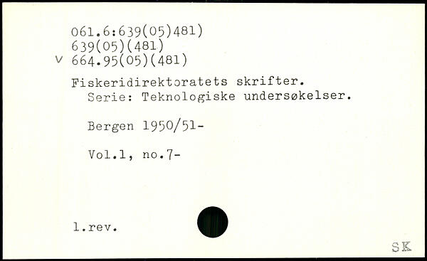 Fiskeridirektoratets skrifter. Serie: Teknologiske undersøkeiser.