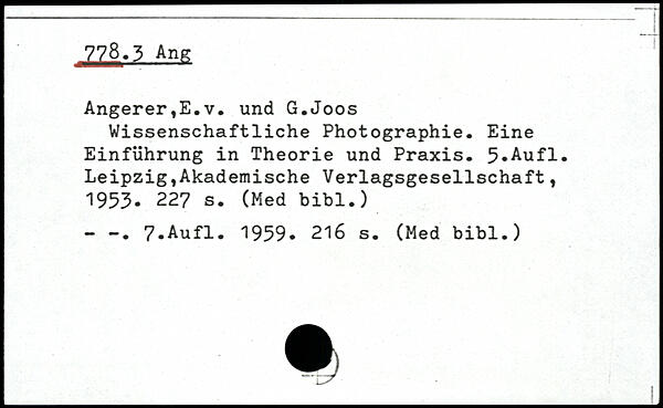 Wissenschaftliche Photographie. Eine Einführung in Theorie und Praxis.