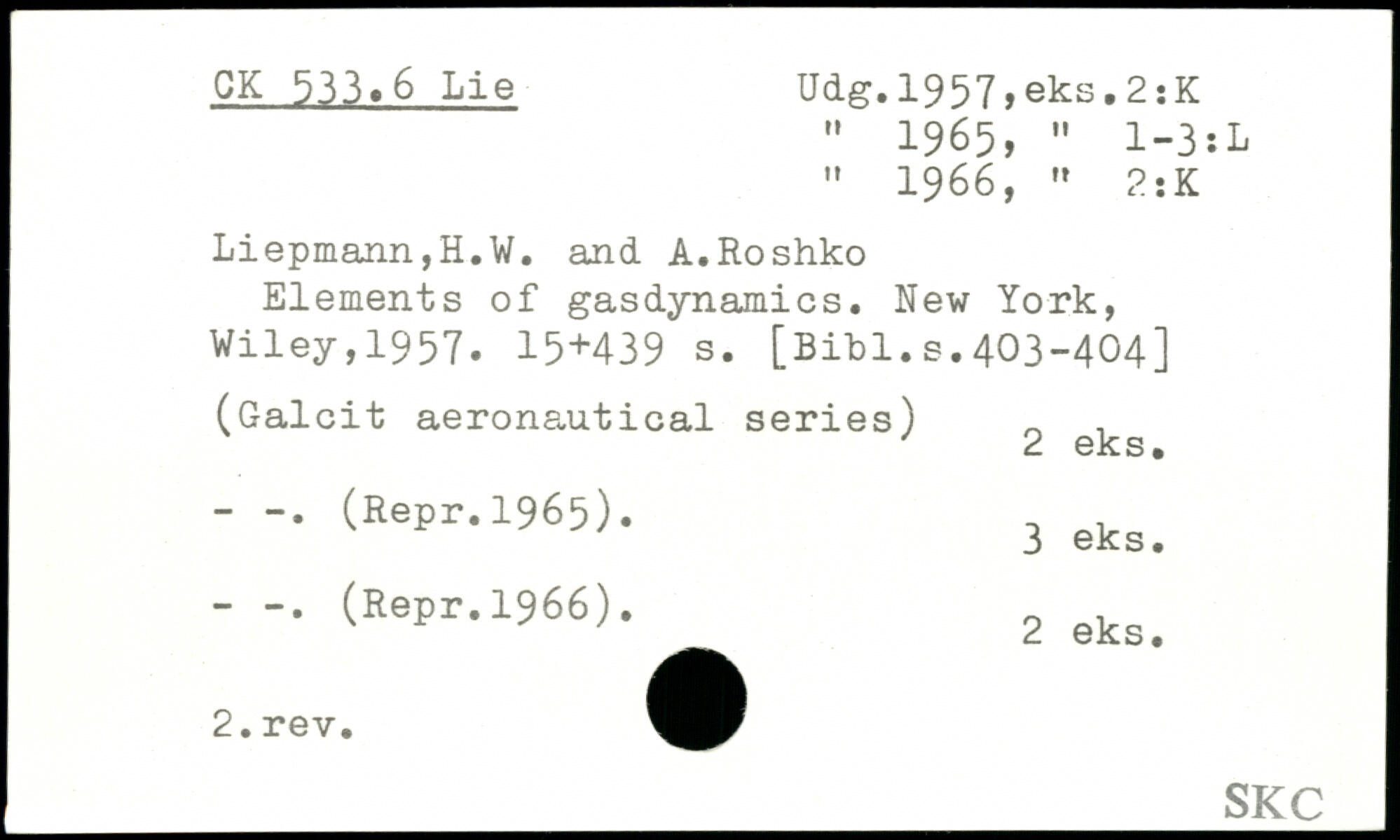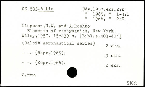 " 1965, " 1-3:L " 1966, , 2 î K Liepmann,H.W. and A.Roshko Elements of gasdynamics.