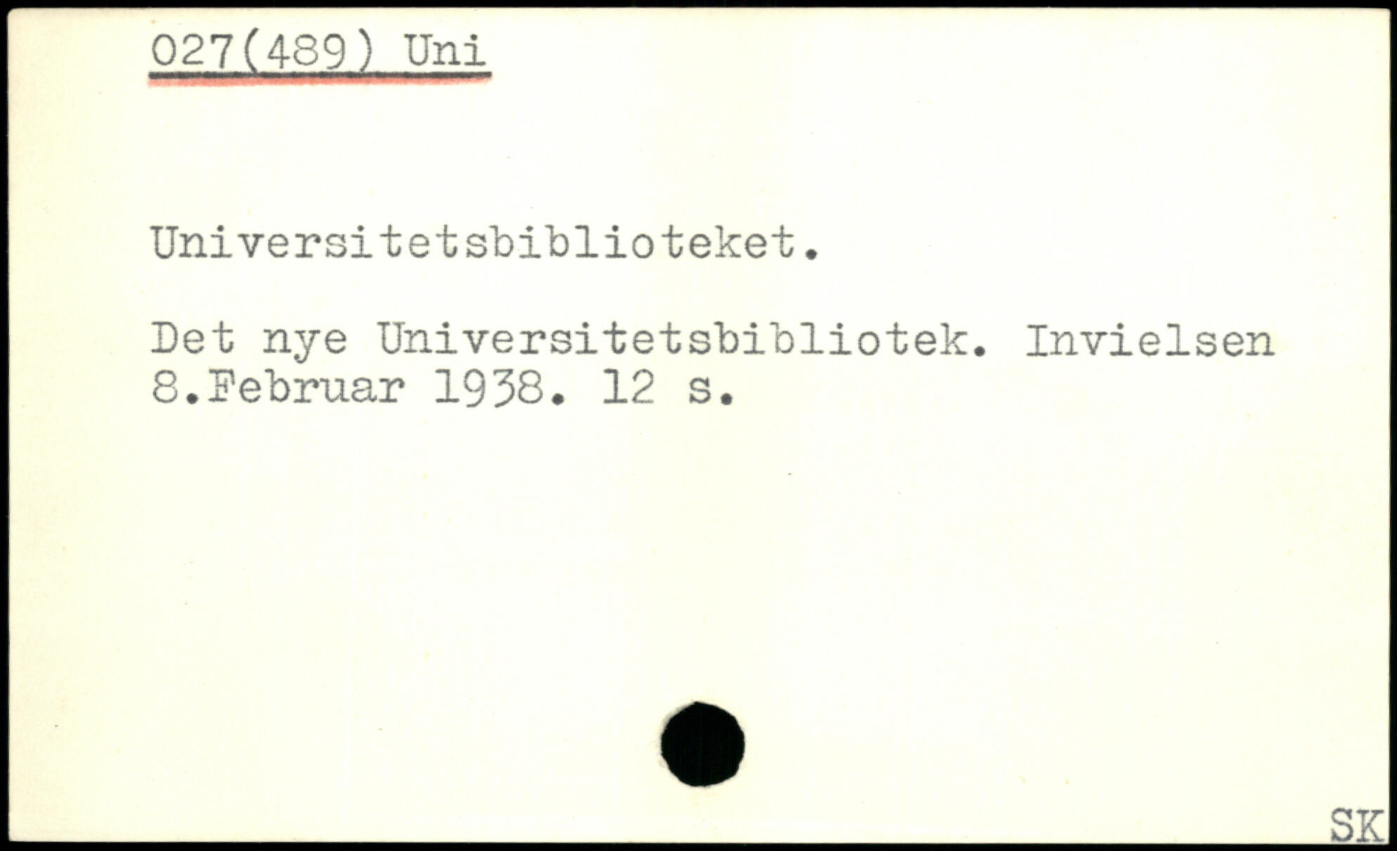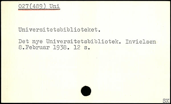 Det nye Universitetsbibliotek. Invielsen S.Pebruar 1938.