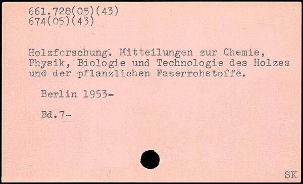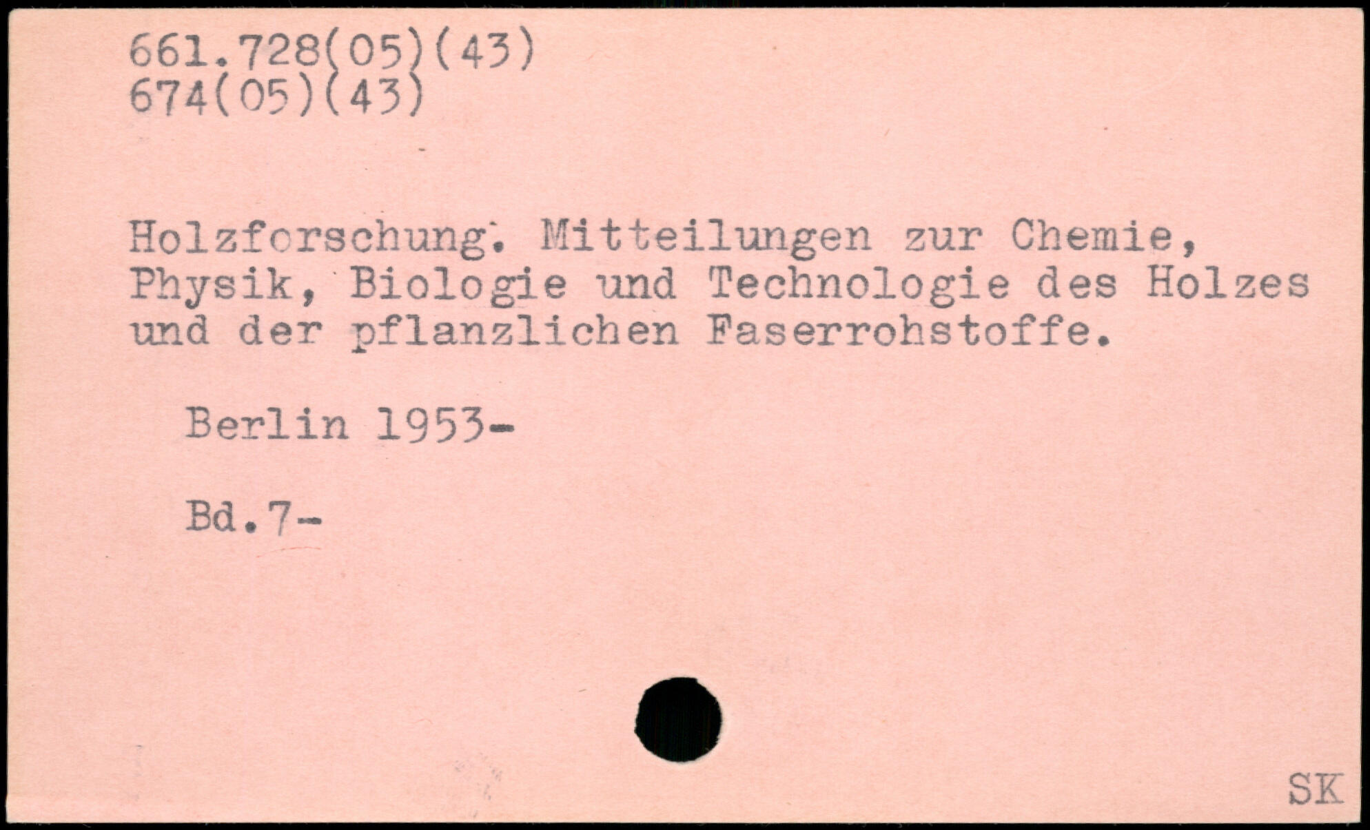 ïïolzfcrschung. Mitteilungen zur Chemie, Physik, Biologie und Technologie des Holzes und der pflanzlichen Faserrohstoffe.