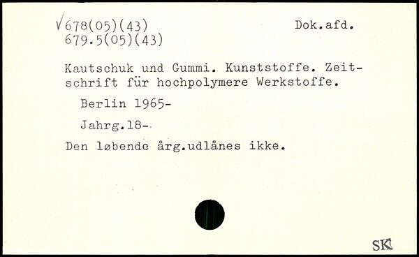 Kautschuk und Gummi. Kunststoffe. Zeitschrift für hochpolymere Werkstoffe.