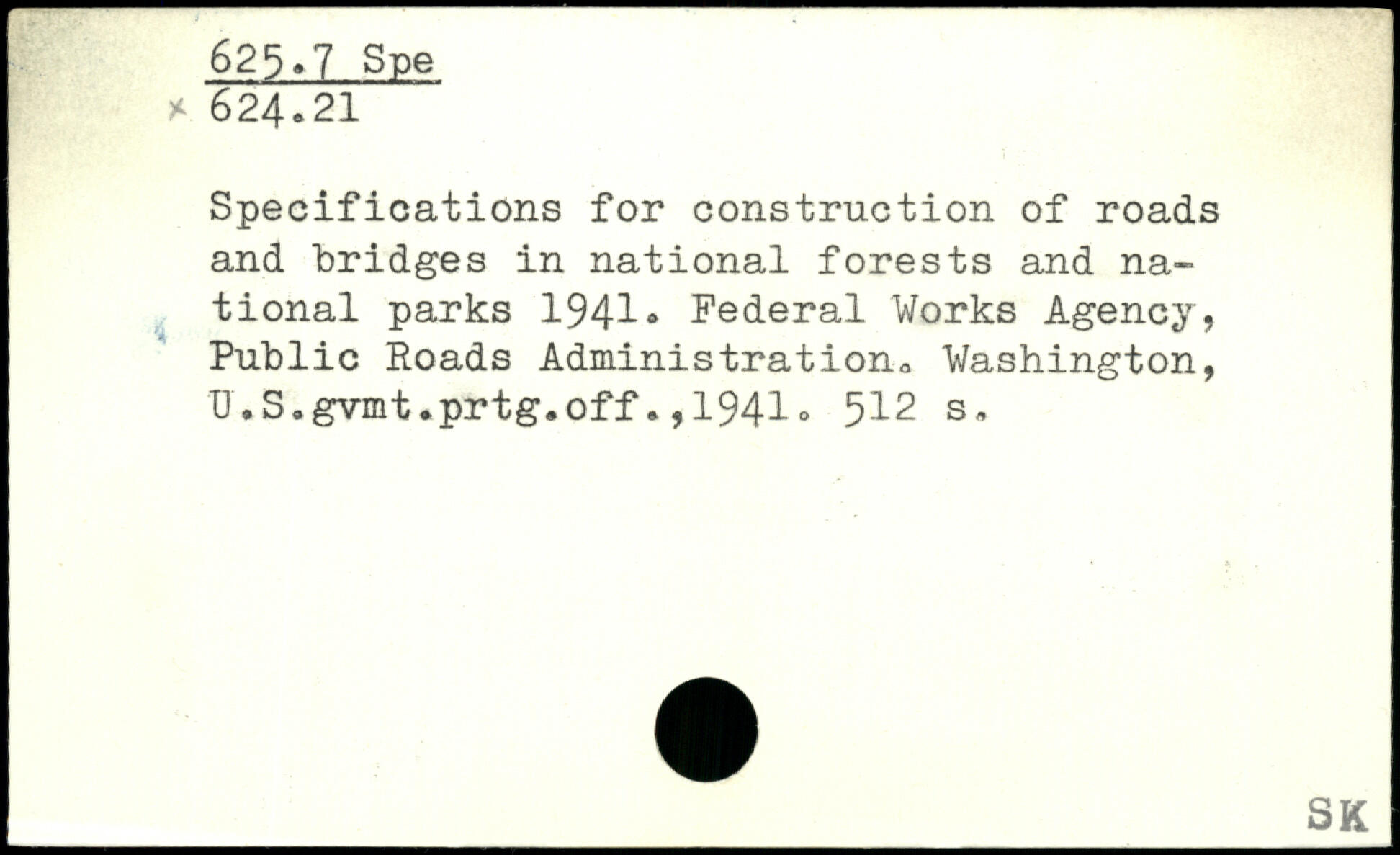 Specifications for construction of roads and bridges in national forests and national parks 1941® Federal Works Agency, Public Roads Administration,, Washington, U.S.gvmt.prtg.off.,1941®