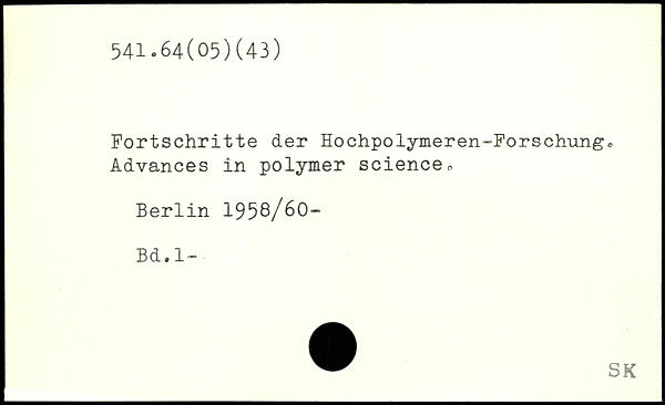 Fortschritte der Hochpolymeren-Forschung. Advances in polymer science.
