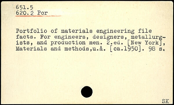 Portfolio of materials engineering file facts. Por engineers, designers, metallurgists, and production men. 2.ea. [New YorkJ, Materials and methods,u.4. [ca.1950].