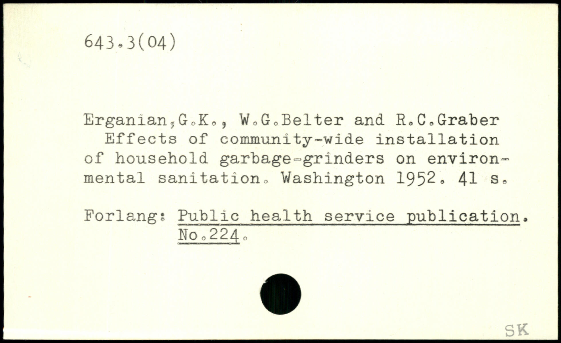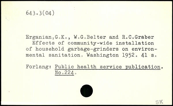 Erganian,GcKo, WoGoBelter and RoC.Graber Effects of community-wide installation of household garbage-grinders on environmental sanitation.