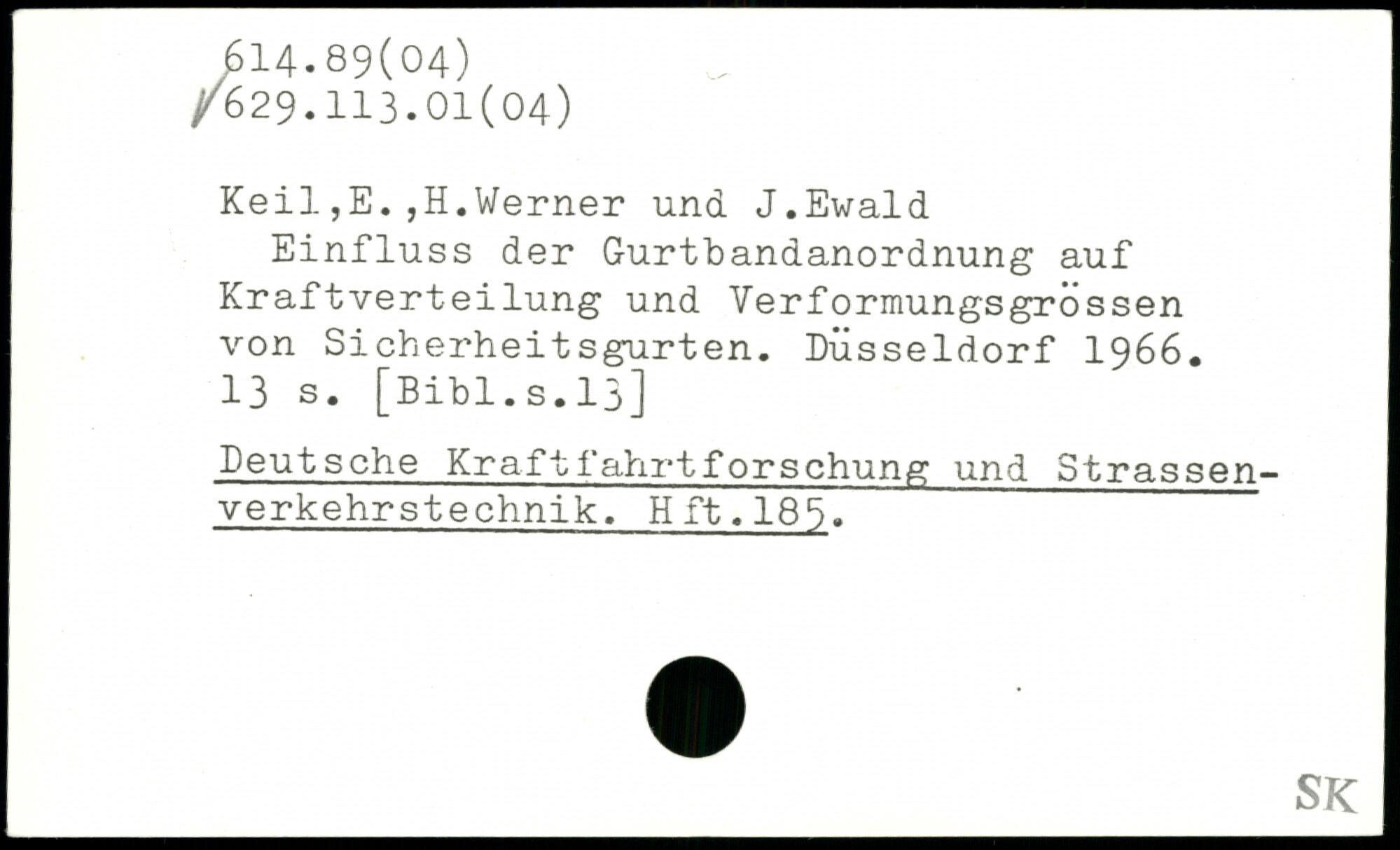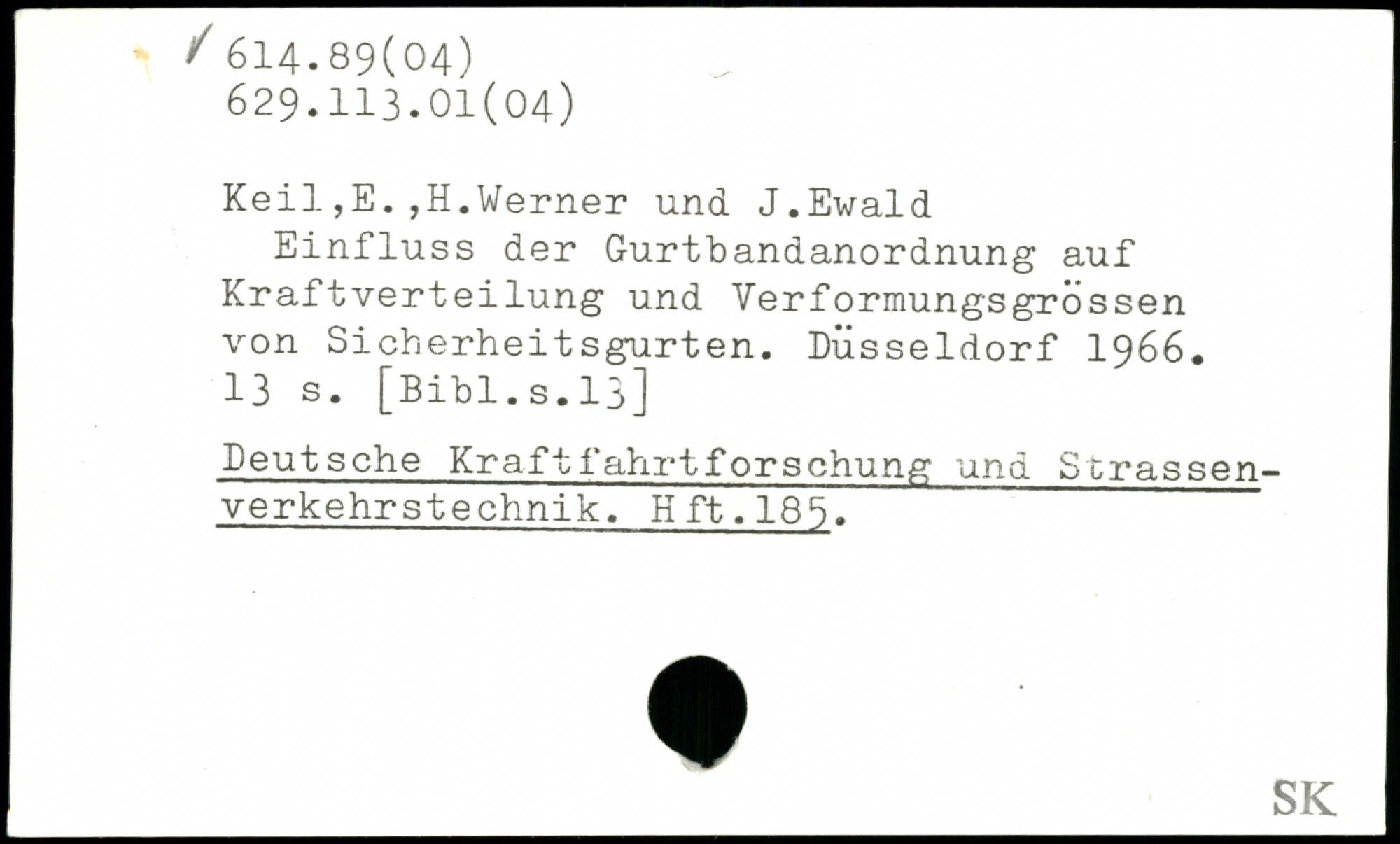 Einfluss der Gurtbandanordnung auf Kraftverteilung und Verformungsgrössen von Sicherheitsgurten. Düsseldorf 1966.