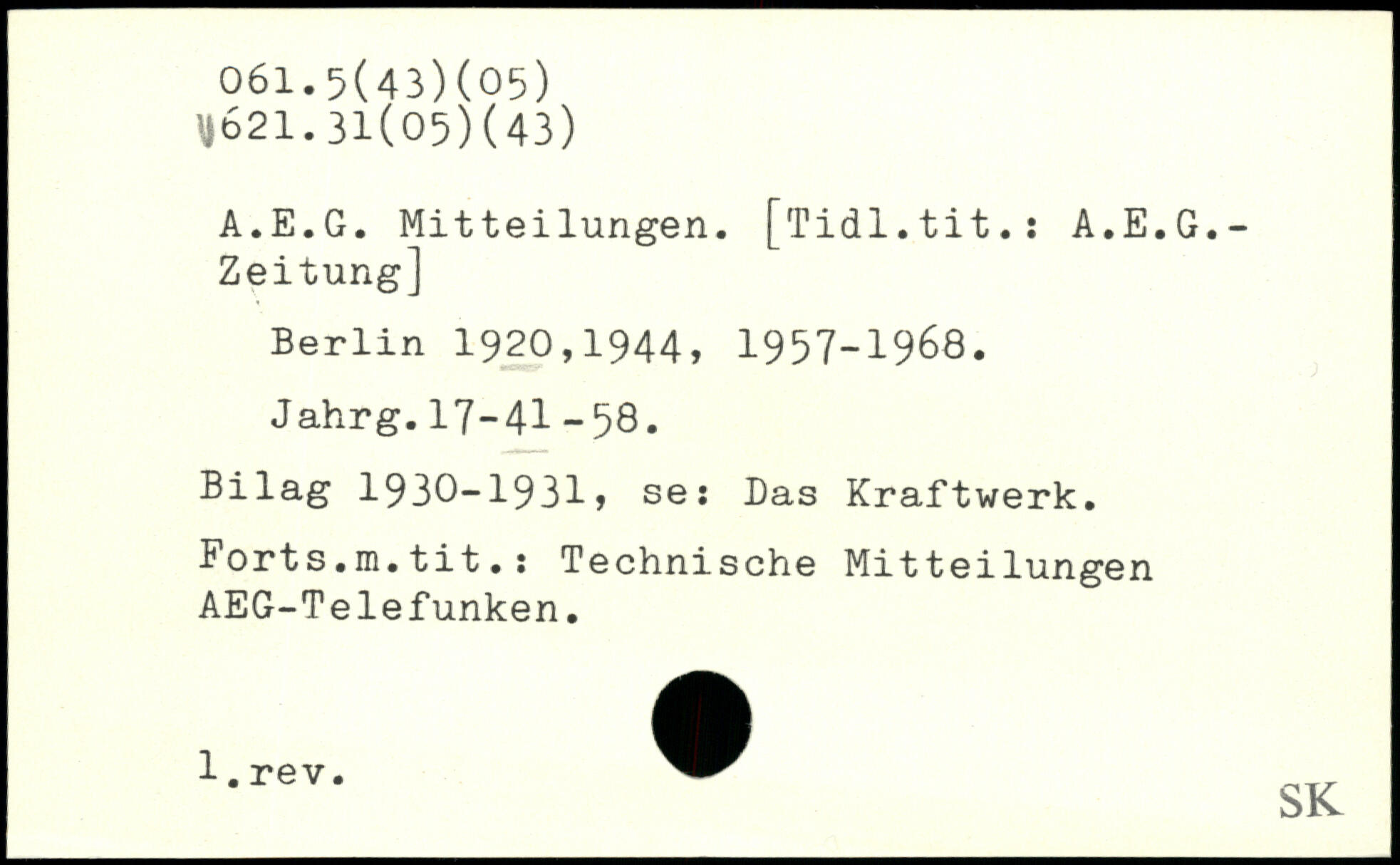 A.E.G. Mitteilungen. [Tidl.tit.: A.E.G.-Zeitung]