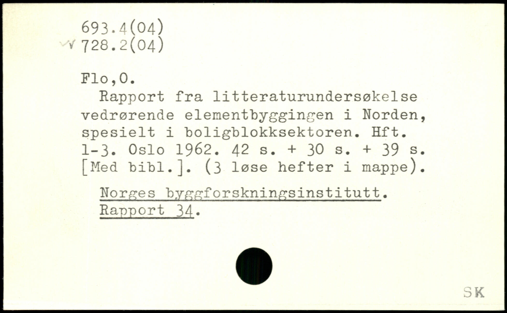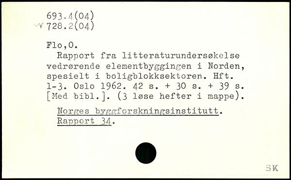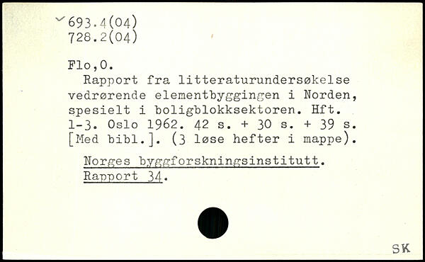 Rapport fra litteraturundersøkelse vedrørende elementbyggingen i Norden, spesielt i boligblokksektoren. Hft. 1-3. Oslo 1962.