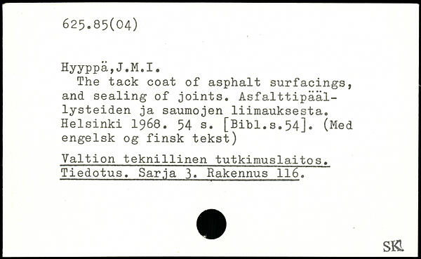 The tack coat of asphalt surfacings, and sealing of joints. Asfalttipaal-lysteiden ja saumojen liimauksesta.