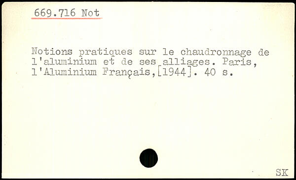 Notions pratiques sur le chaudronnage de 1faluminium, et de sesralliages. Paris, l’Aluminium Français, l 194-4].