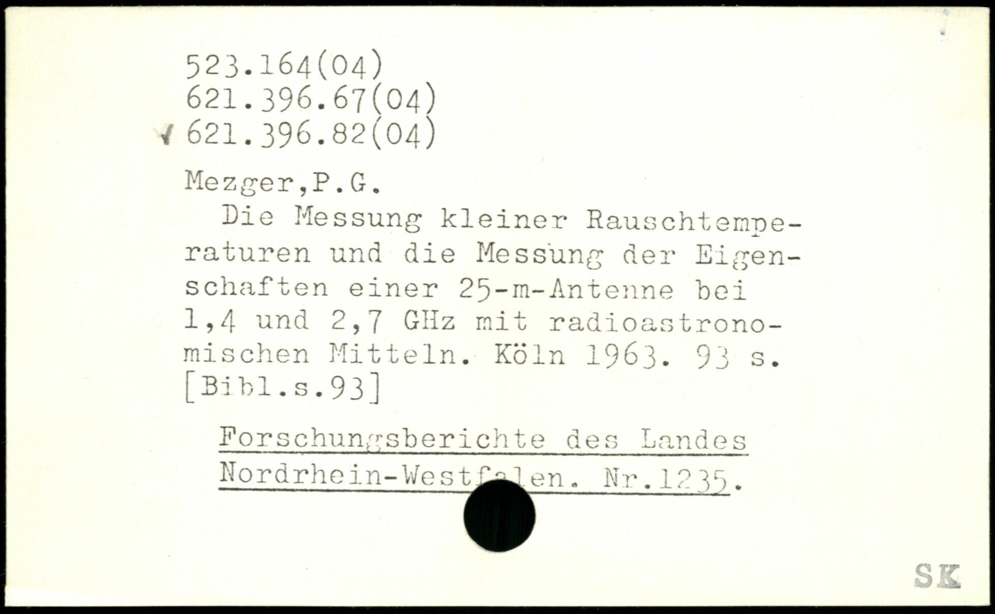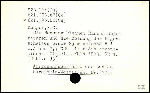 Die Messung kleiner Rauschterroe-raturen und die Messung der Eigenschaften einer 25-iri-Antenne hei 1,4 und 2,7 GHz mit radioastronomischen Mitteln.