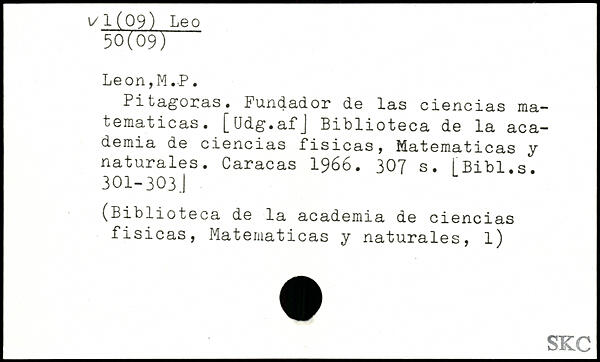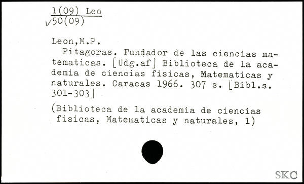 Pitagoras. Fundador de las ciencias ma-tematicas. [Udg.afJ Biblioteca de la academia de ciencias fisicas, Matematicas y naturales. Caracas 1966.