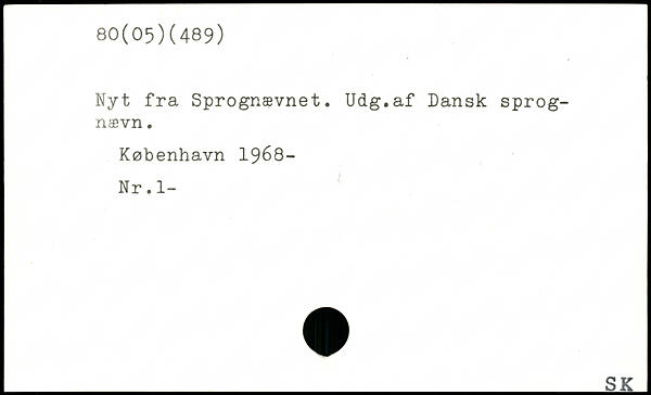Nyt fra Sprognævnet. Udg.af Dansk sprognævn.