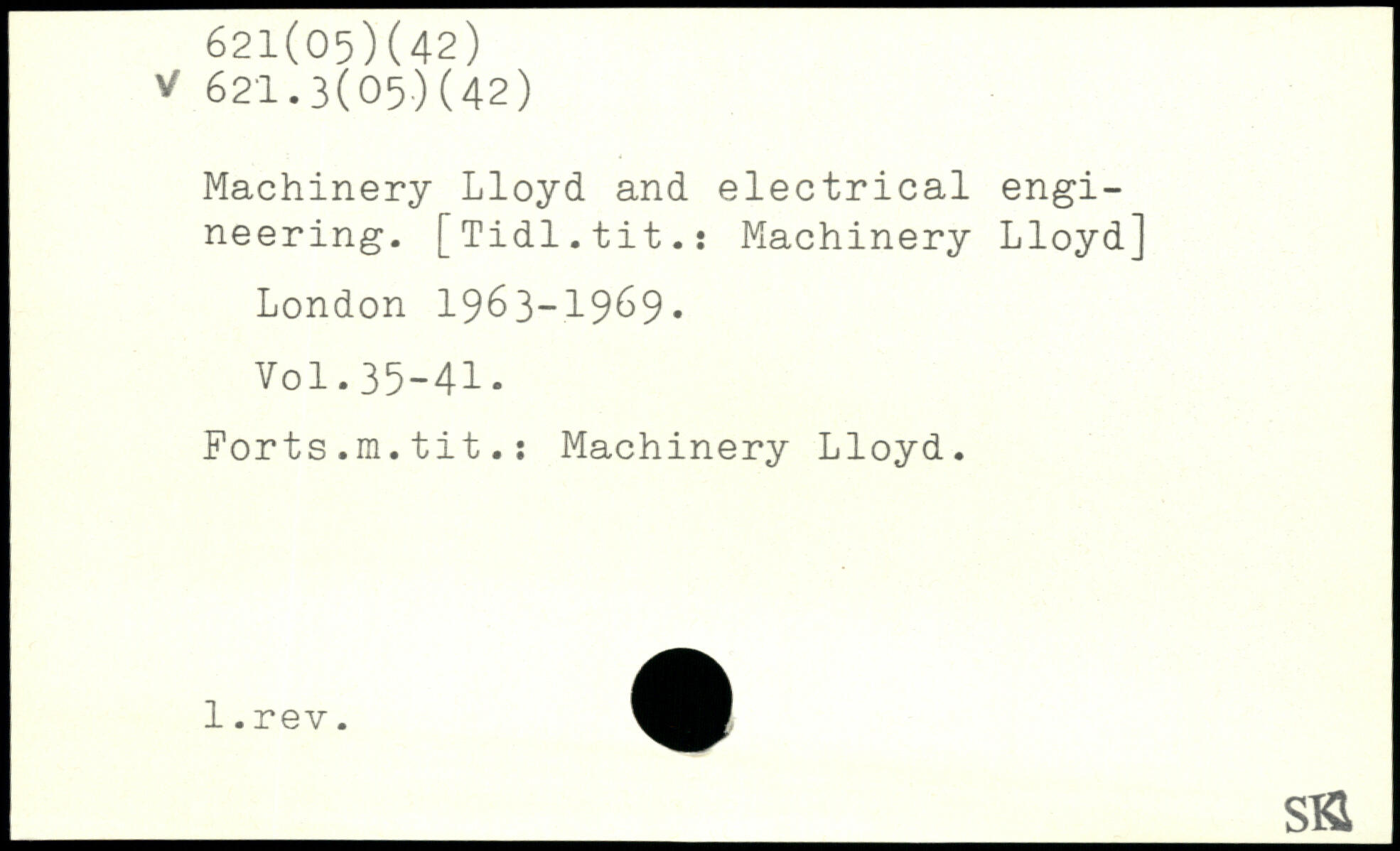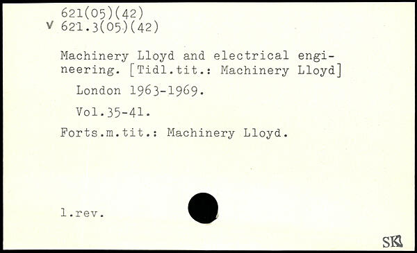 Machinery Lloyd and electrical engineering. [Tidl.tit.: Machinery Lloyd]