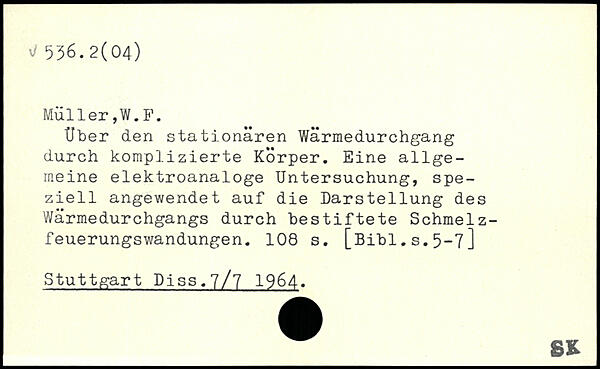 Uber den stationären Wärmedurchgang durch komplizierte Körper. Eine allgemeine elektroanaloge Untersuchung, speziell angewendet auf die Darstellung des Wärmedurchgangs durch bestiftete Schmelzfeuerungswandungen.