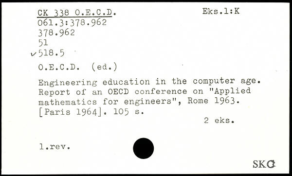 Engineering education in the computer age. Report of an OECD conference on "Applied mathematics for engineers", Rome 1963.
