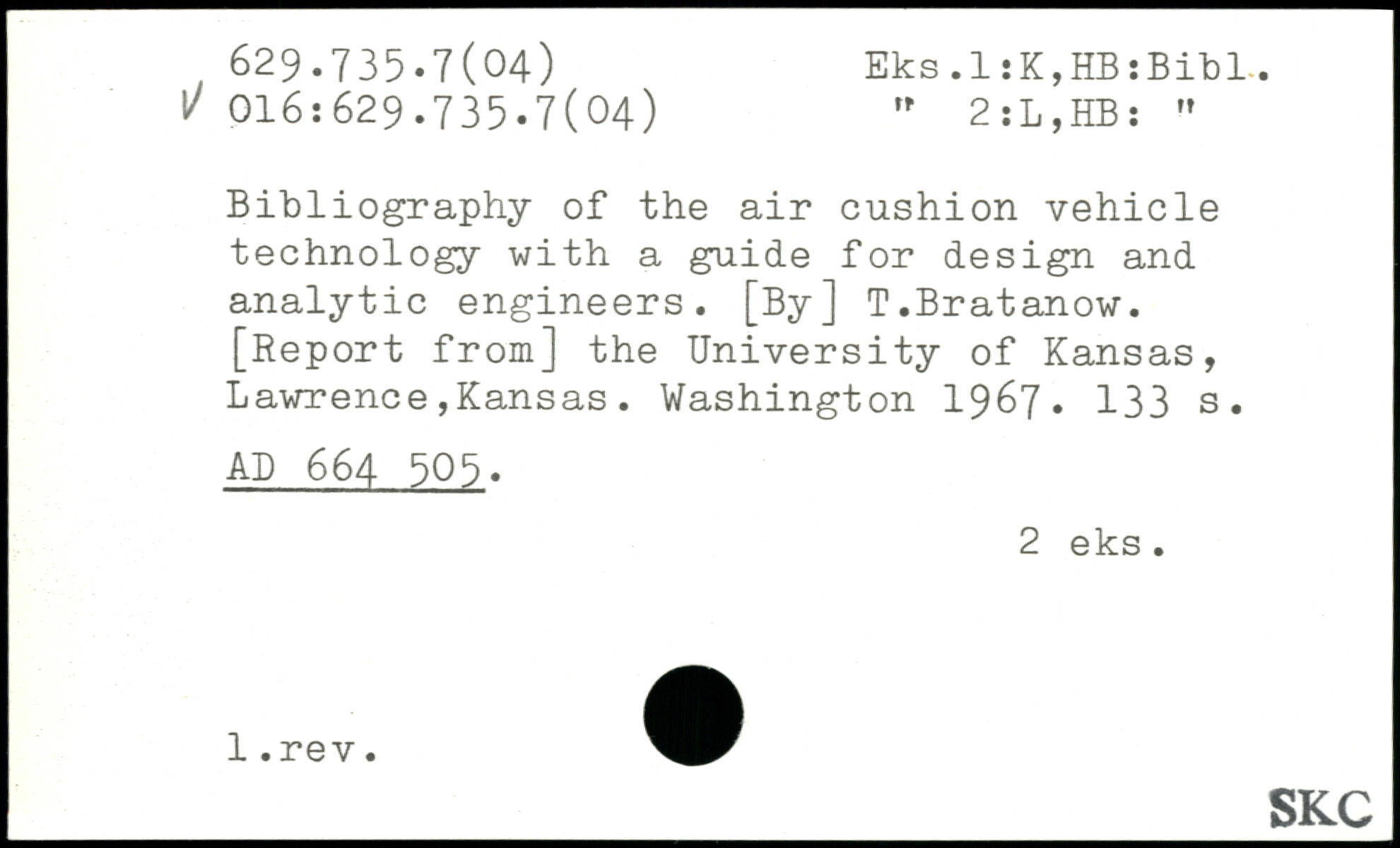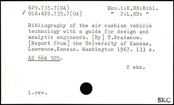 Bibliography of the air cushion vehicle technology with a guide for design and analytic engineers. [By] T.Bratanow.