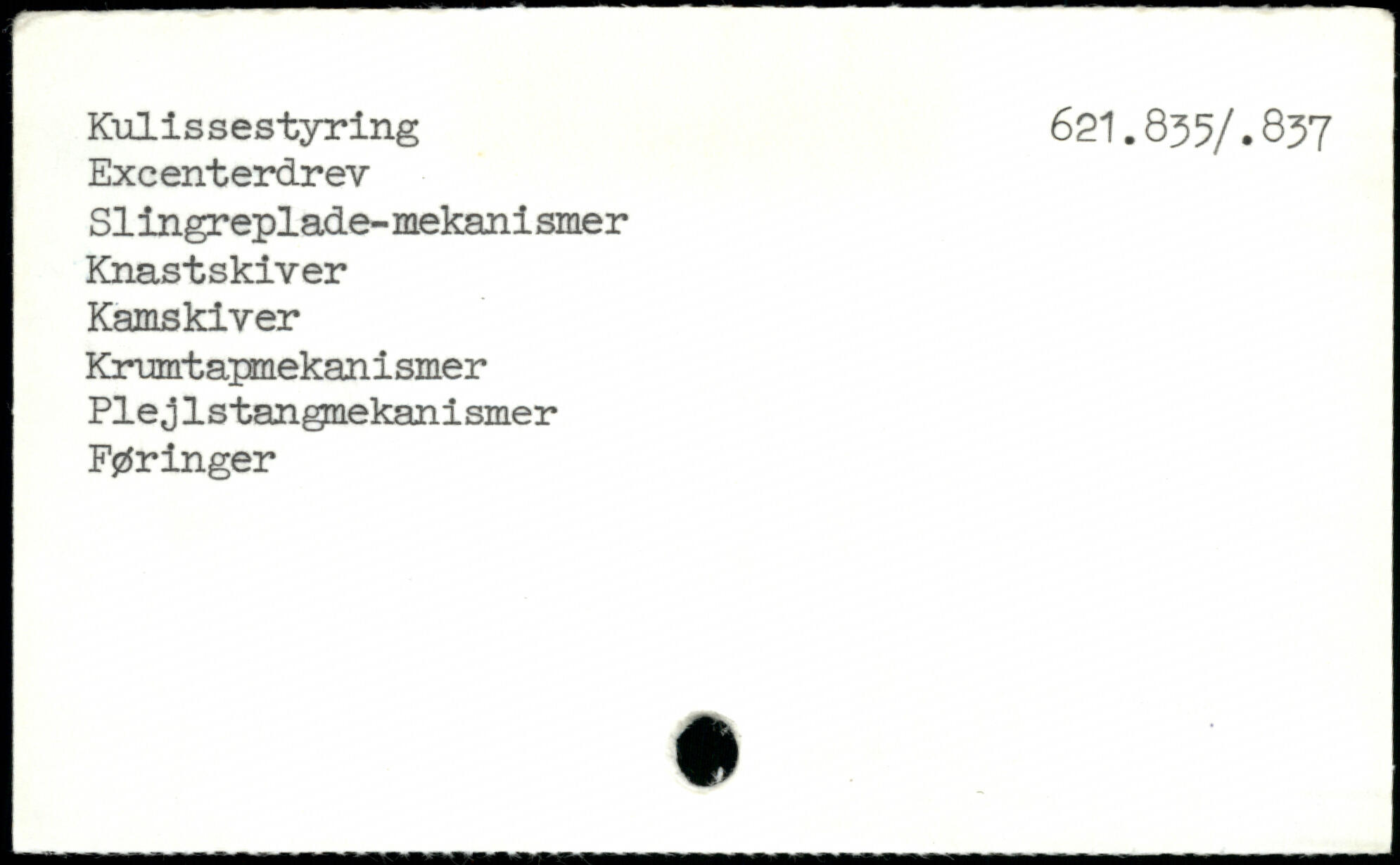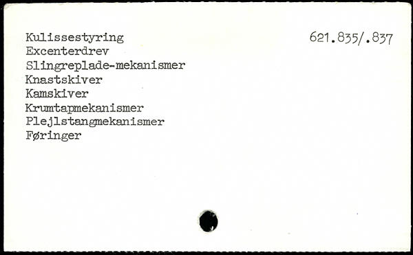 Excenterdrev Slingreplade-mekanismer Knastskiver Kamskiver Krumtapmekanismer Plej lstangnekanismer Føringer