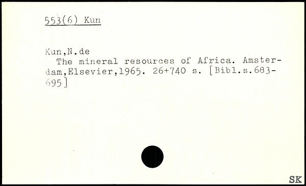 The mineral resources of Africa. Amsterdam, Elsevier , 19&5.