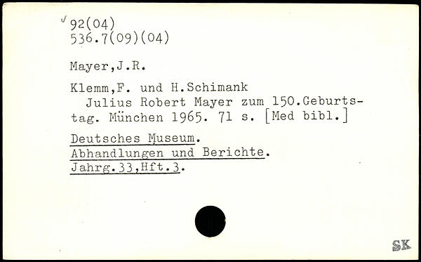 Klemm,F. und ÏÏ.Schimank Julius Robert Mayer zum 150.Geburtstag.