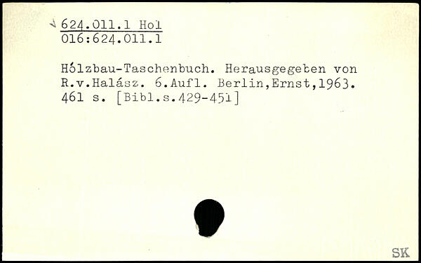 Holzbau-Taschenbuch. Herausgegeben von R.v.Halåsz.