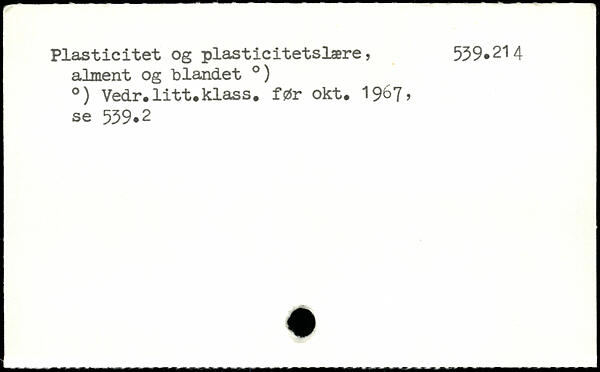 Plasticitet og plasticitetslære, 539.214 alment og blandet .) .) Vedr.litt.klass. før okt. 19^7, se 539.2
