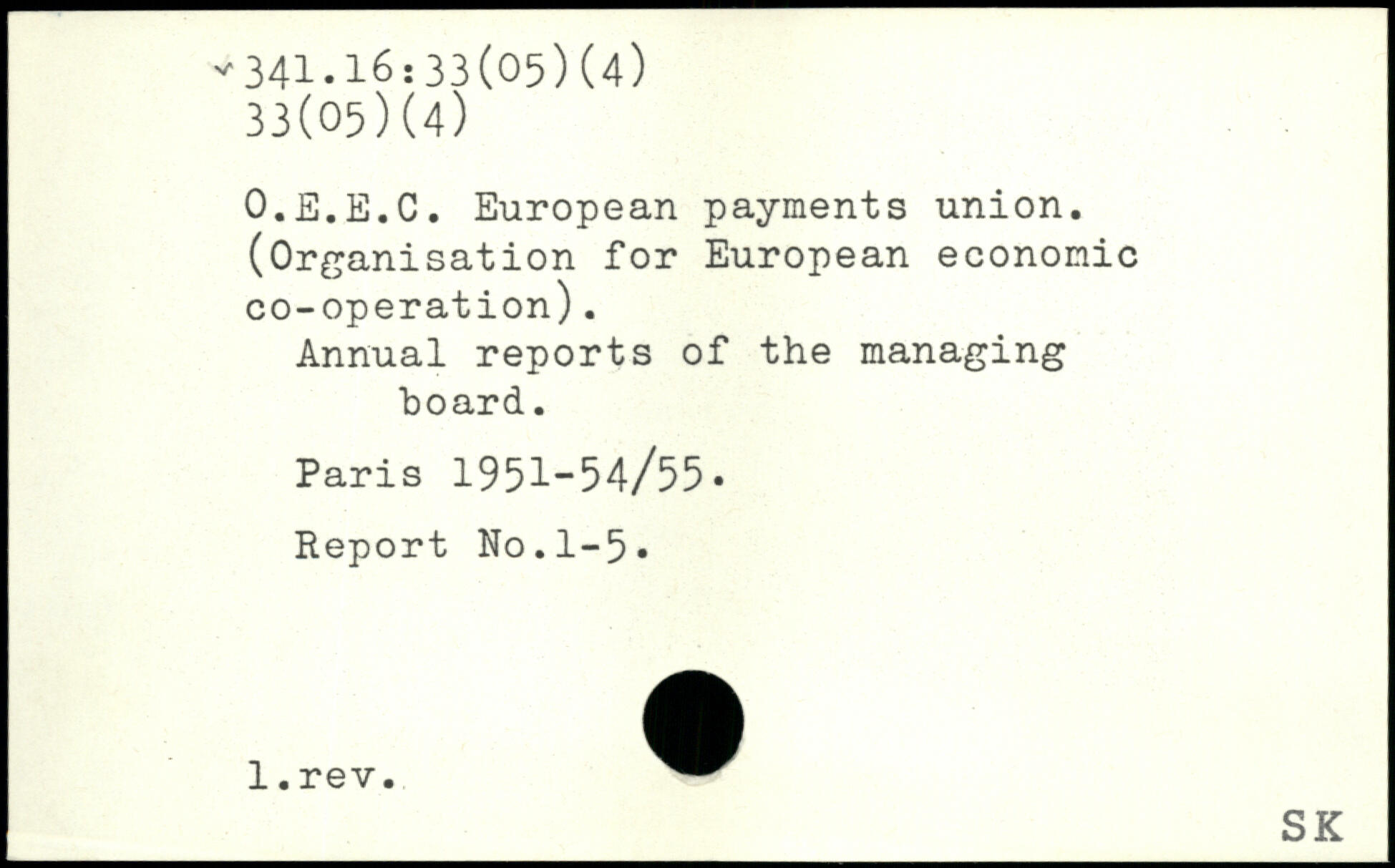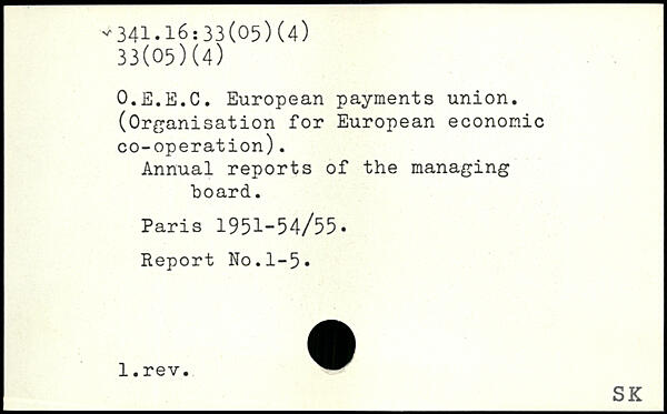 O.E.E.C. European payments union. (Organisation for European economic co-operation). Annual reports of the managing hoard..