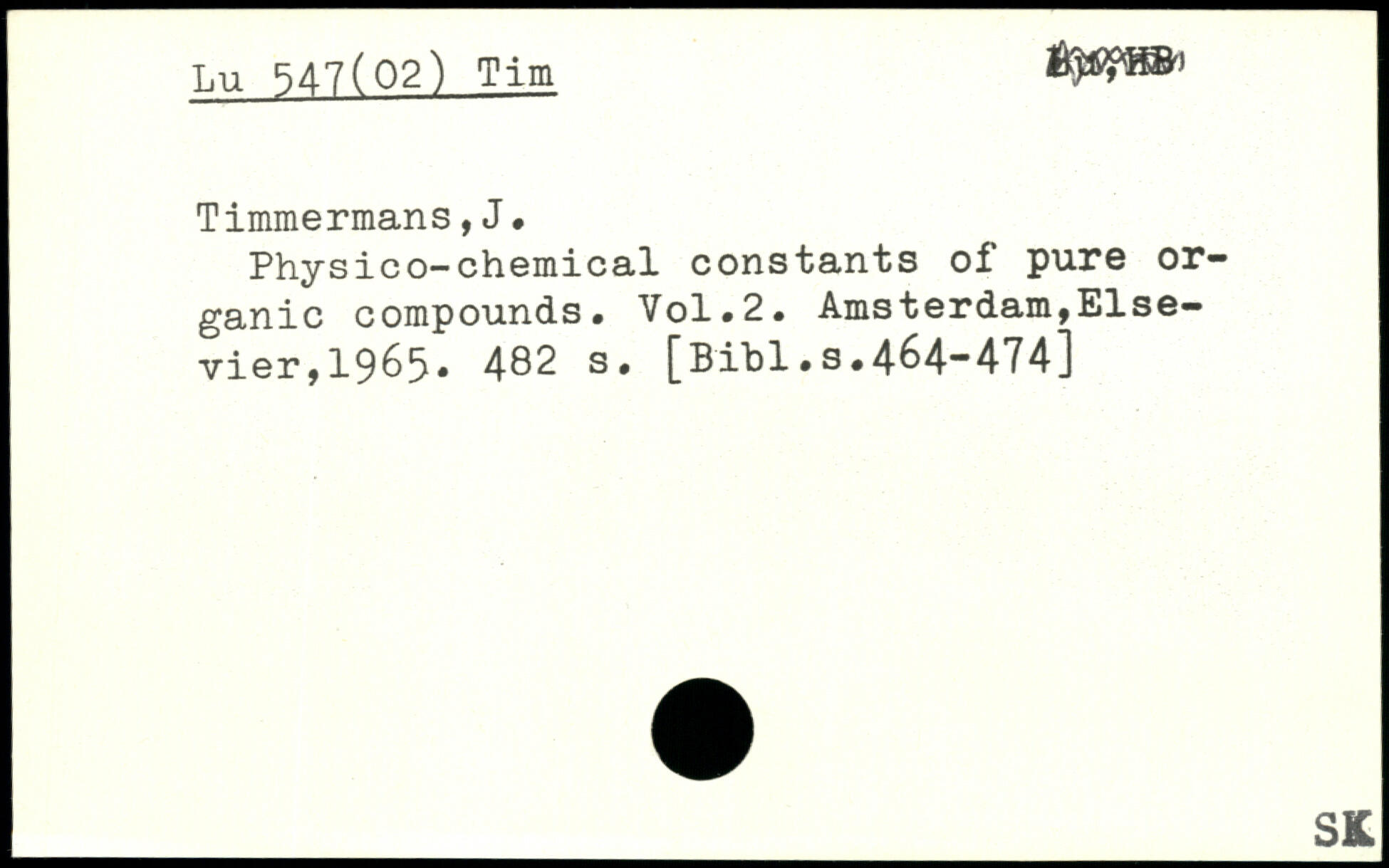 Physico-chemical constants of pure organic compounds.