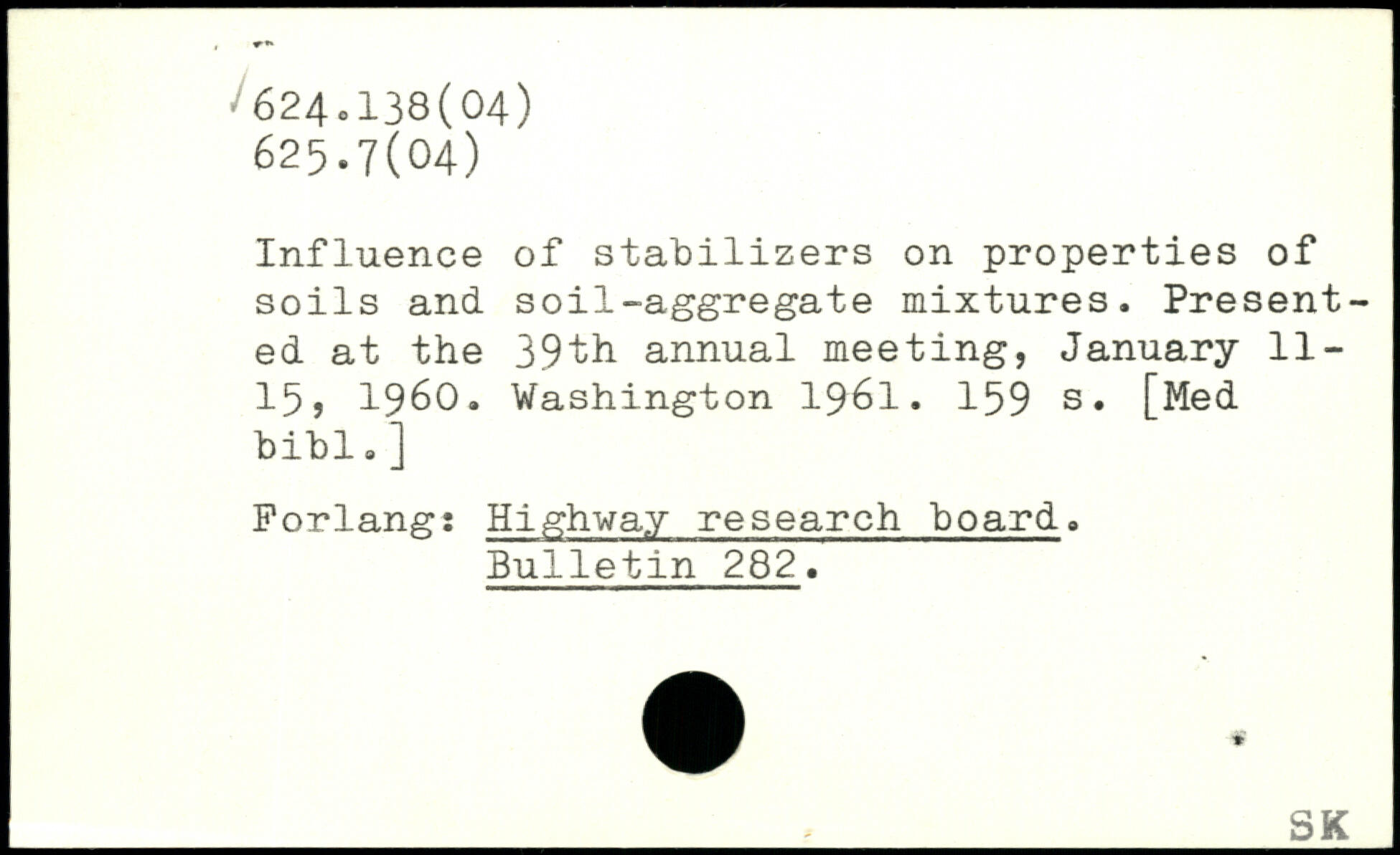 Influence of stabilizers on properties of soils and soil-aggregate mixtures. Presented at the 39th annual meeting, January 11-15, 1960.