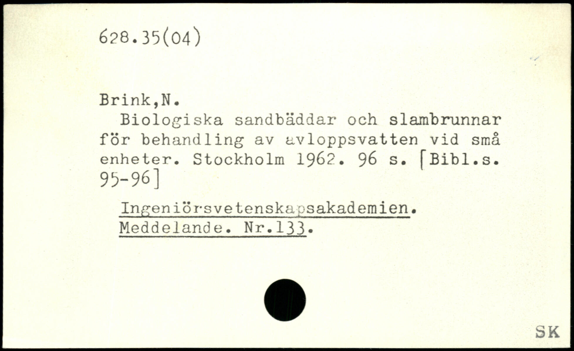 Biologiska sandbäddar och slambrunnar för behandling av avloppsvatten vid små enheter.