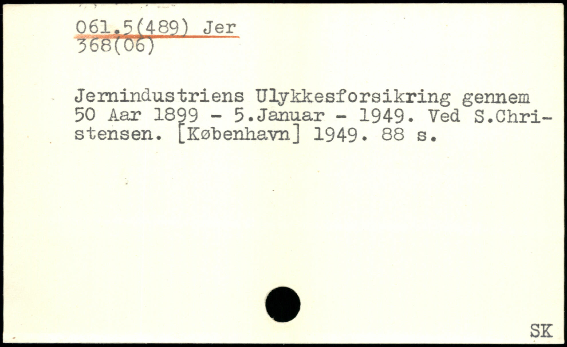 5Sg{ftS)- Jernindustriens Ulykkesforsikring gennem 50 Aar 1899 - 5.Januar - 1949. Ved S.Christensen.