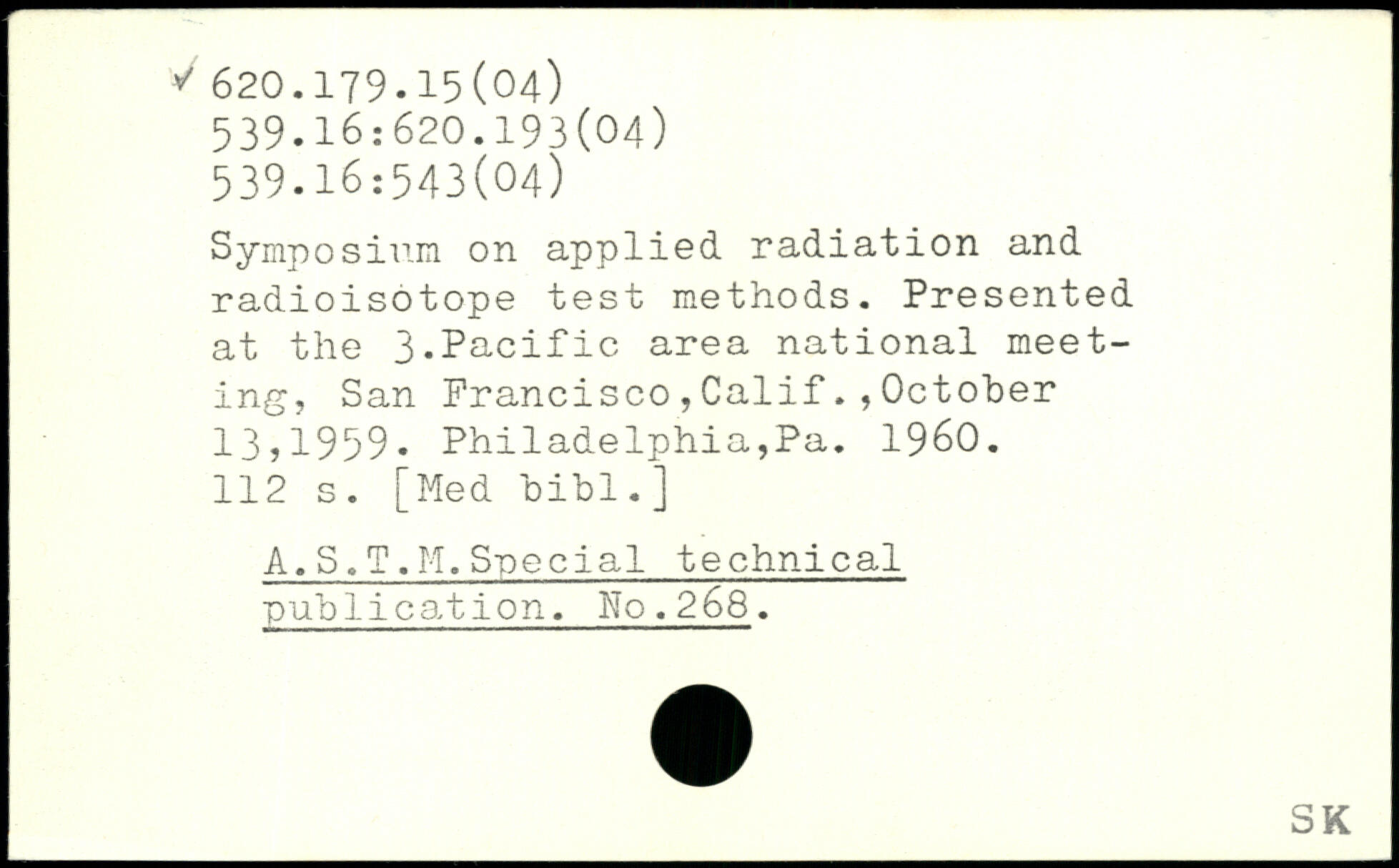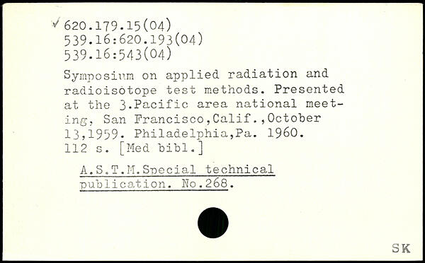 Symposium on applied radiation and i radioisotope test methods. Presented at the 3.Pacific area national meeting, San Francisco,CalifOctober 13j1959. Philadelphia,Pa. 1960.