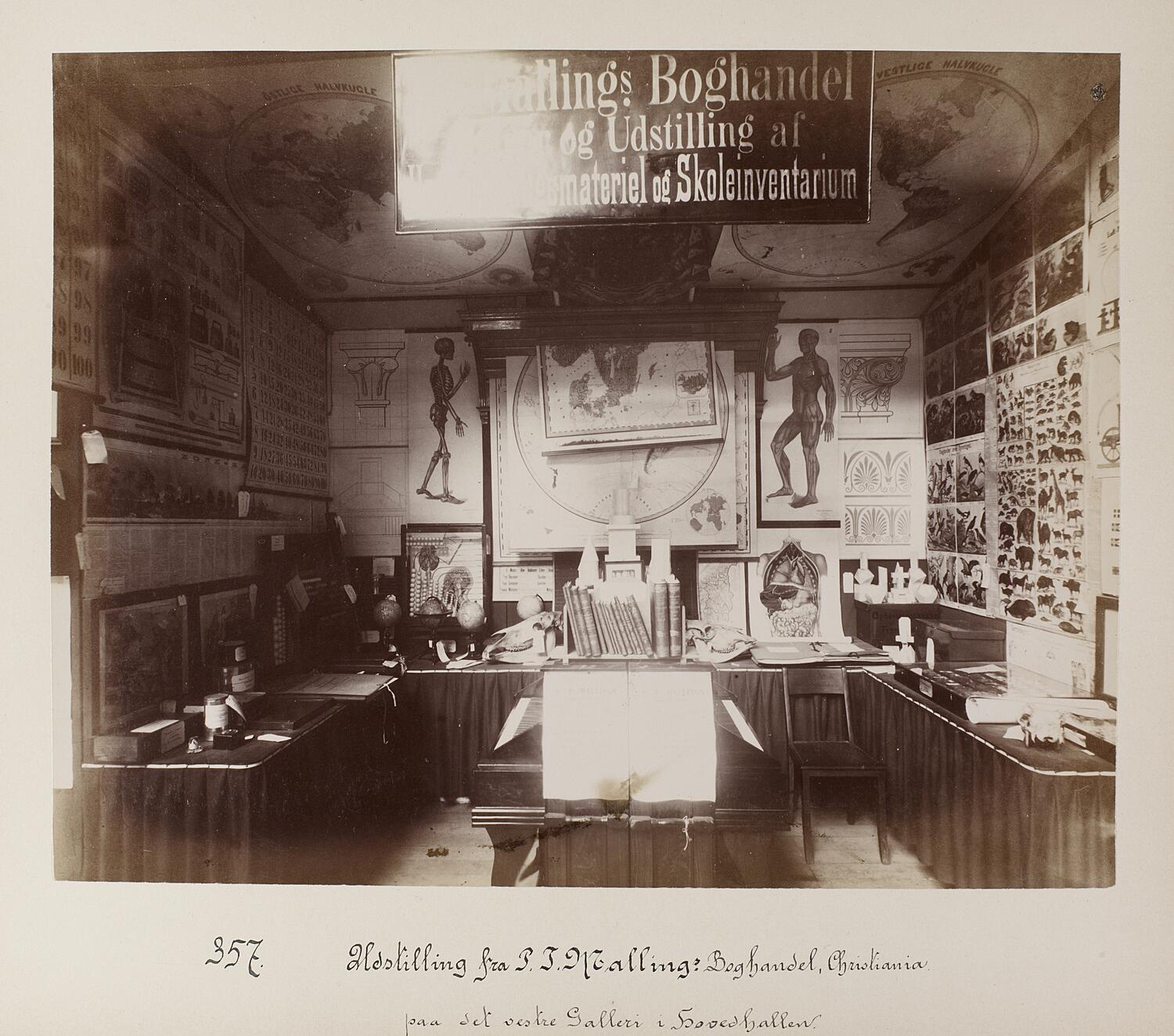 Udstilling fra P. T. Mallings Boghandel, Christiania paa det vestre Galleri i Hovedhallen