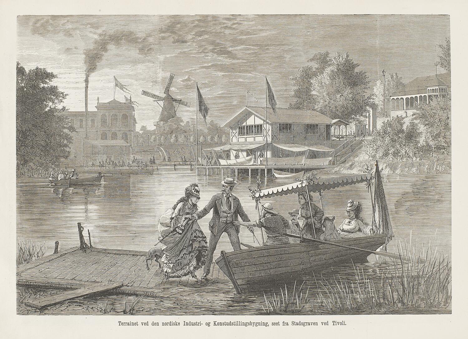 Terrænet ved den nordiske Industri- og Kunstudstillingsbygning set fra Stadsgraven ved Tivoli