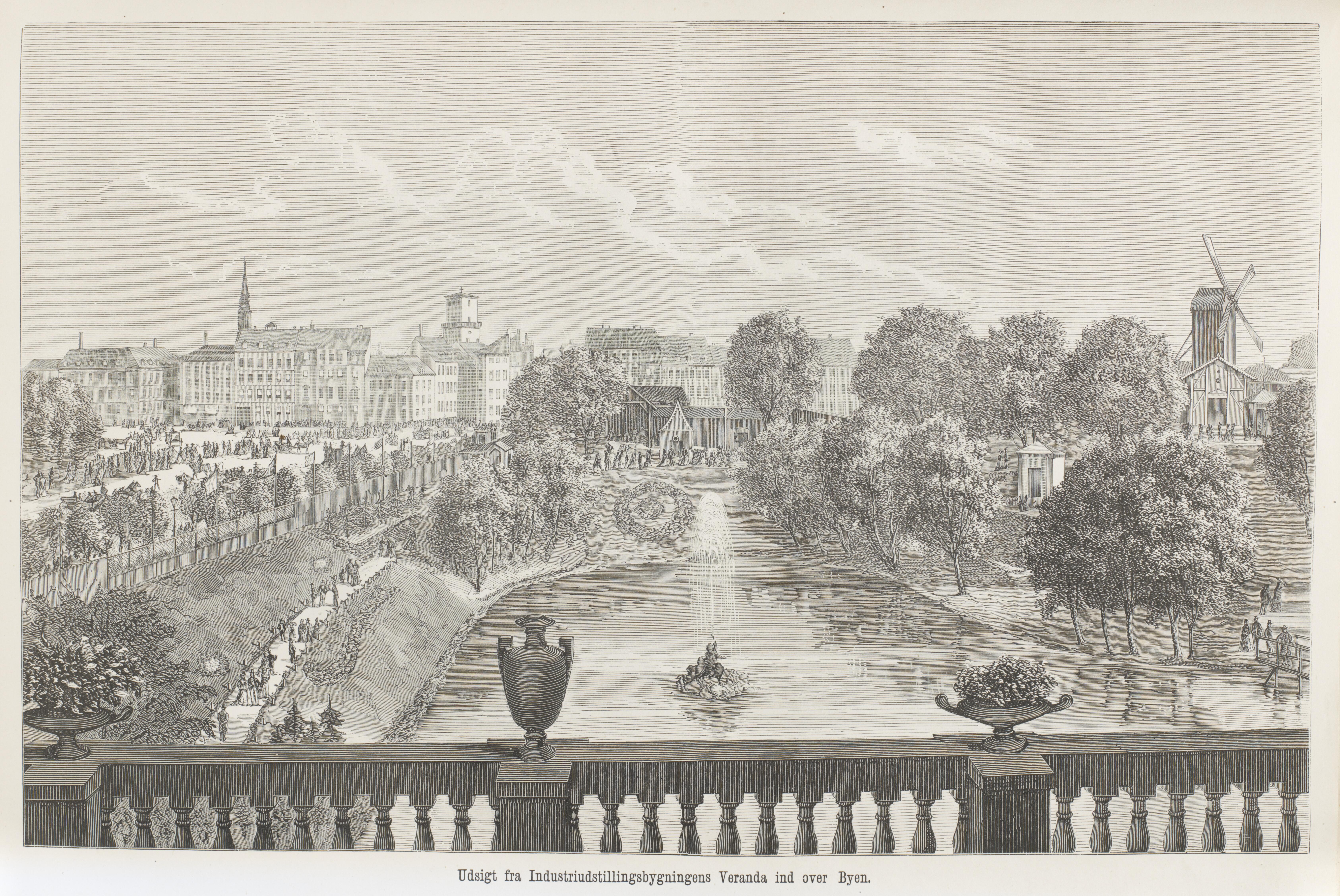 Udsigt fra Industriudstillingsbygningens Veranda ind over Byen