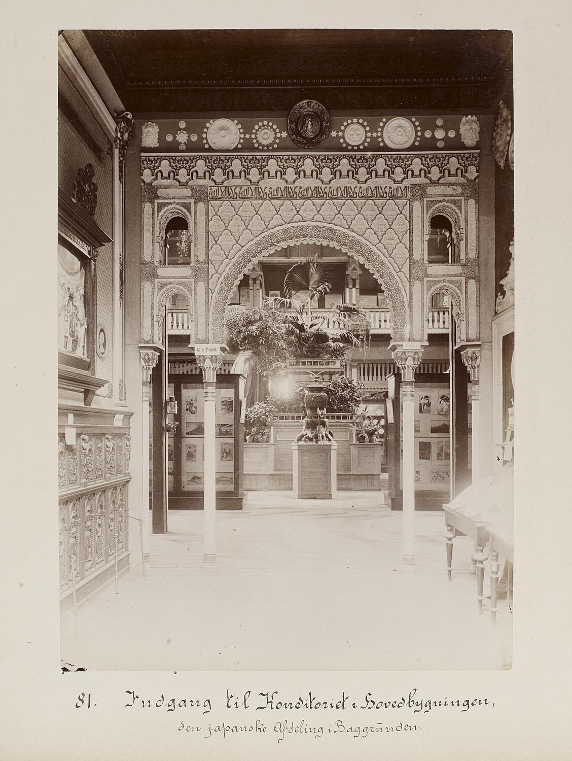 Indgang til Konditoriet i Hovedbygningen. Den japanske Afdeling i Baggrunden