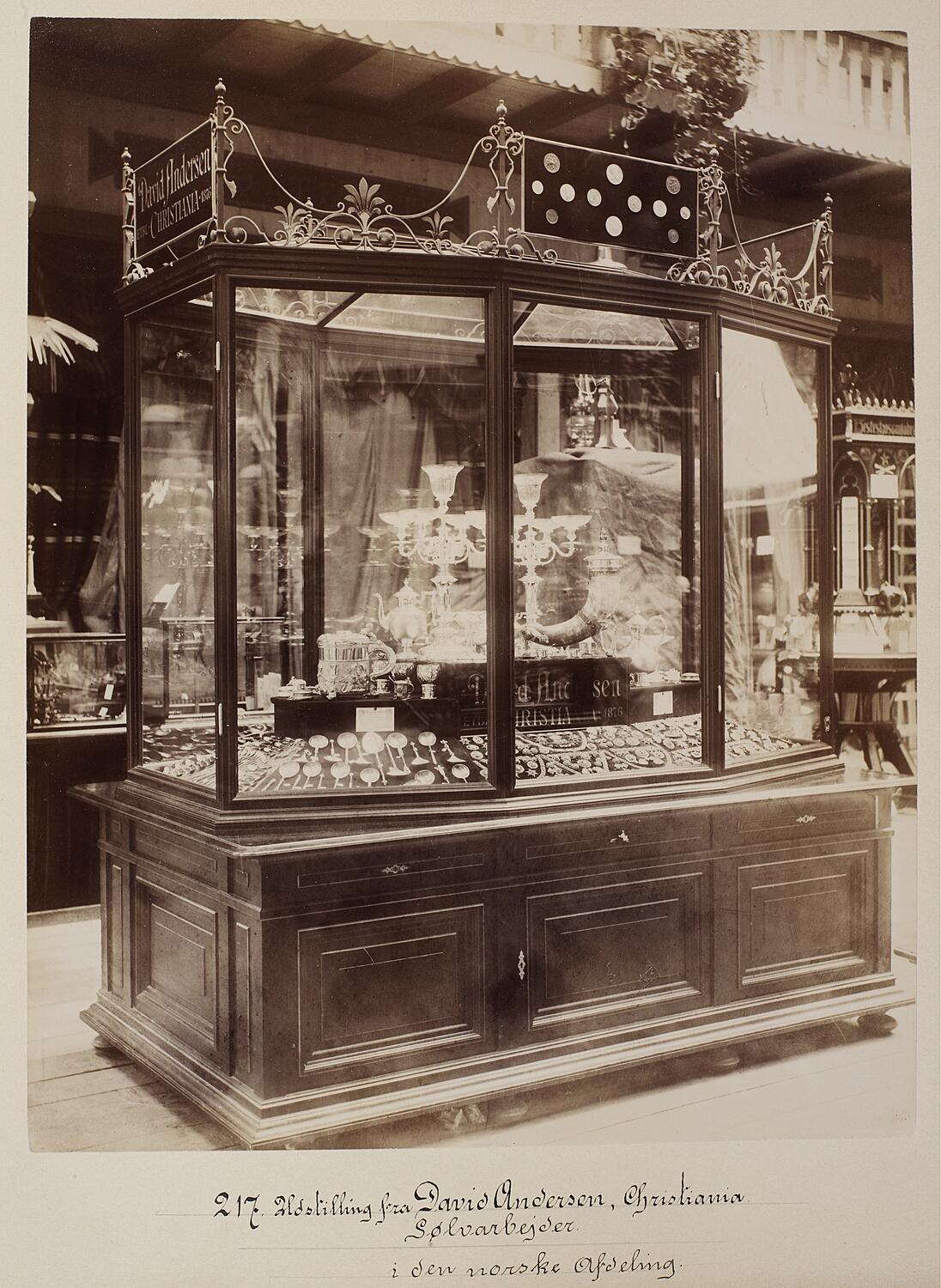 Udstilling fra David Andersen, Christiania. Sølvarbejder i den norske Afdeling