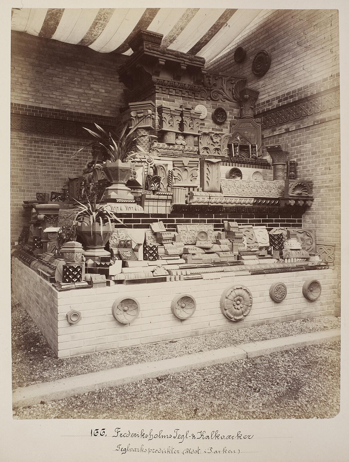 Frederiksholms Tegl- og Kalkværker. Teglværksprodukter udstillet i Parken